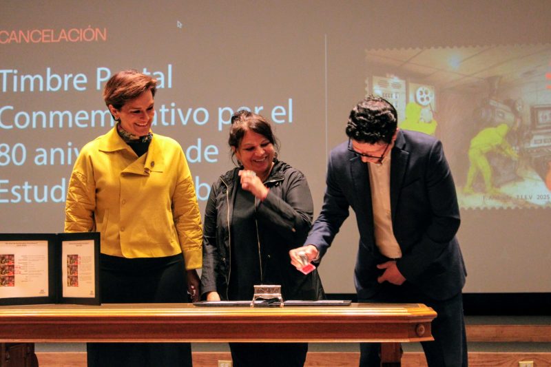 Tras el simbólico gesto de apertura, se dio paso a la presentación y posterior cancelación del timbre postal conmemorativo, el cual también fue puesto a la venta al público general. Más allá de la colaboración institucional, lo que realmente resalta es lo simbólico y lo paralelo de dicha emisión: un gesto de resistencia y de profundo valor cultural y tradicional. Es decir, estamos ante la “bendición simbólica” de una institución tan antigua y tradicional como el Servicio Postal Mexicano hacia otra ya consolidada: los Estudios Churubusco. De ahí que resalte esa frase tan aparentemente simple pero poderosa: “los primeros 80 años”.